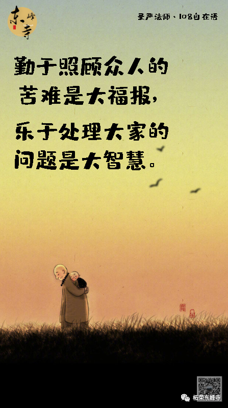 曾经,无著菩萨进山闭关,非常热切地想见到弥勒菩萨,可是经过了四年的苦修,他连一个好梦都没有做过,他决定下山。但是路上却见到了一位老妇人在磨铁棒,她要把铁棒磨成针。对照自己,无著菩萨感到很羞愧,他改变了主意,决定回去。又经过了四年的苦修,他还是没有任何感应,他再次决定下山。但是再路上,他却见到了一个人,拿着羽毛在刷一座大山,因为这座大山挡住了他家的阳光,他要把这座大山刷掉。见此情景,他决定回去继续闭关。