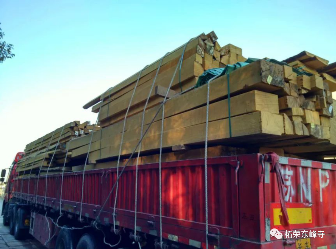 在张家港买到原木,然后直接从港口拉到锯木厂,用大锯子锯成各种设计好的型号,然后用13米的长途货车傍晚装车,隔天清晨到柘荣,需要吊车或者叉车和转运车送到东峰寺加工。