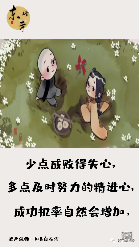 信徒非常欢喜回答道:“这是应该的,我每天来寺礼佛时,自觉心灵就像洗涤过似的清凉,但回到家中,心就烦乱了,我们一个家庭主妇,如何在烦嚣的城市中保持一颗清净纯洁的心呢?”