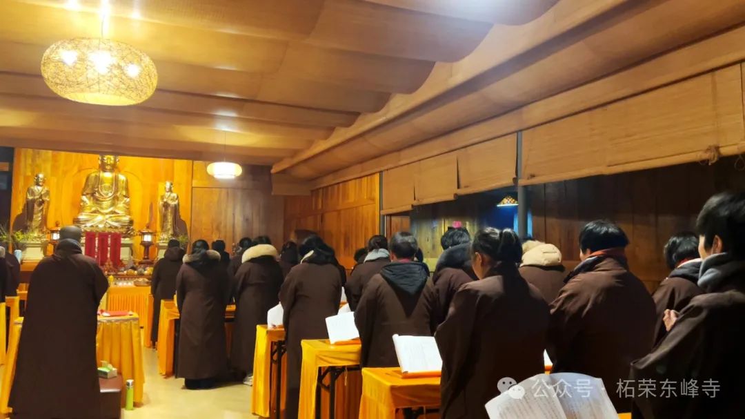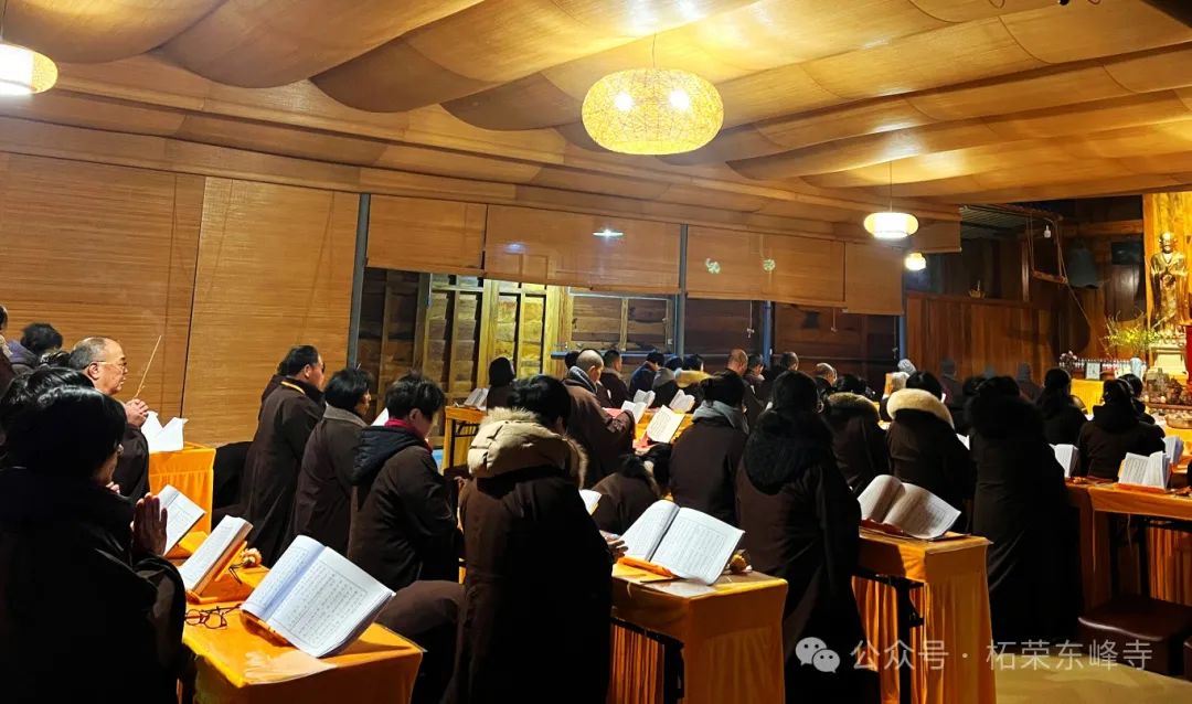 2025年2月6日,乙巳正月初九,柘荣东峰寺众弟子在上惟下明师父上人的带领下于临时佛堂举行供天法会。东峰寺常住僧、诸功德主、护法居士虔诚迎请、礼拜,十方诸佛菩萨和护法诸天降临坛场 接受供养,感谢过去一年的护佑,希望新的一年继续守护东峰寺以及僧俗二众用功办道,免诸障难。
